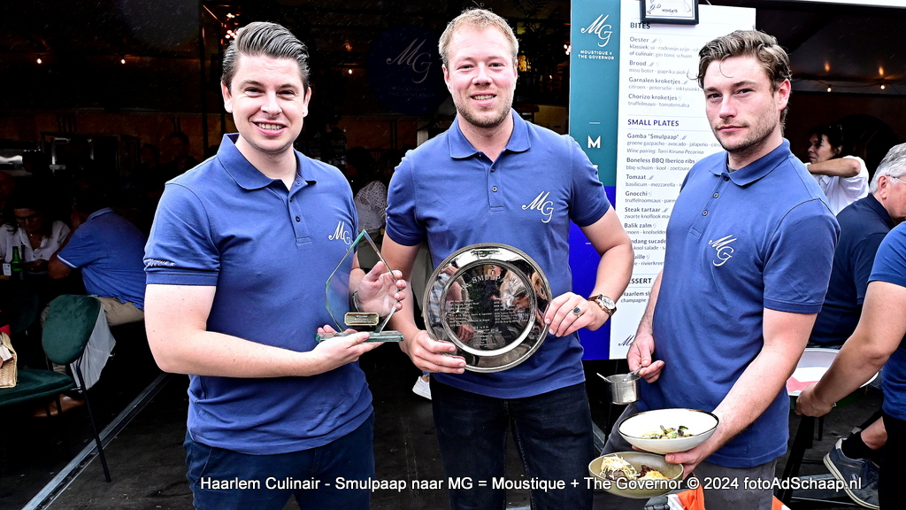 Op vrijdag 2 augustus 2024 ging de Haarlem Culinair Smulpaap na beoordeling van de vakjury naar MG, de samenwerking van Moustique en The Governor. Zaterdag 3 augustus kwam daar nog een prijs bovenop. Ook het publiek had de houten kist op de centrale bar op het Hasselman & Leeflang Horecaplein rijkelijk van stembriefjes voorzien. Met overduidelijke meerderheid kwam daar nogmaals MG uit als beste uit.
